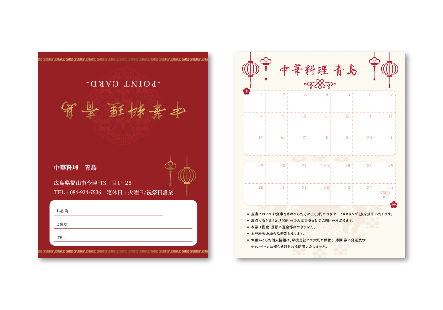 中華料理 青島様 ポイントカード