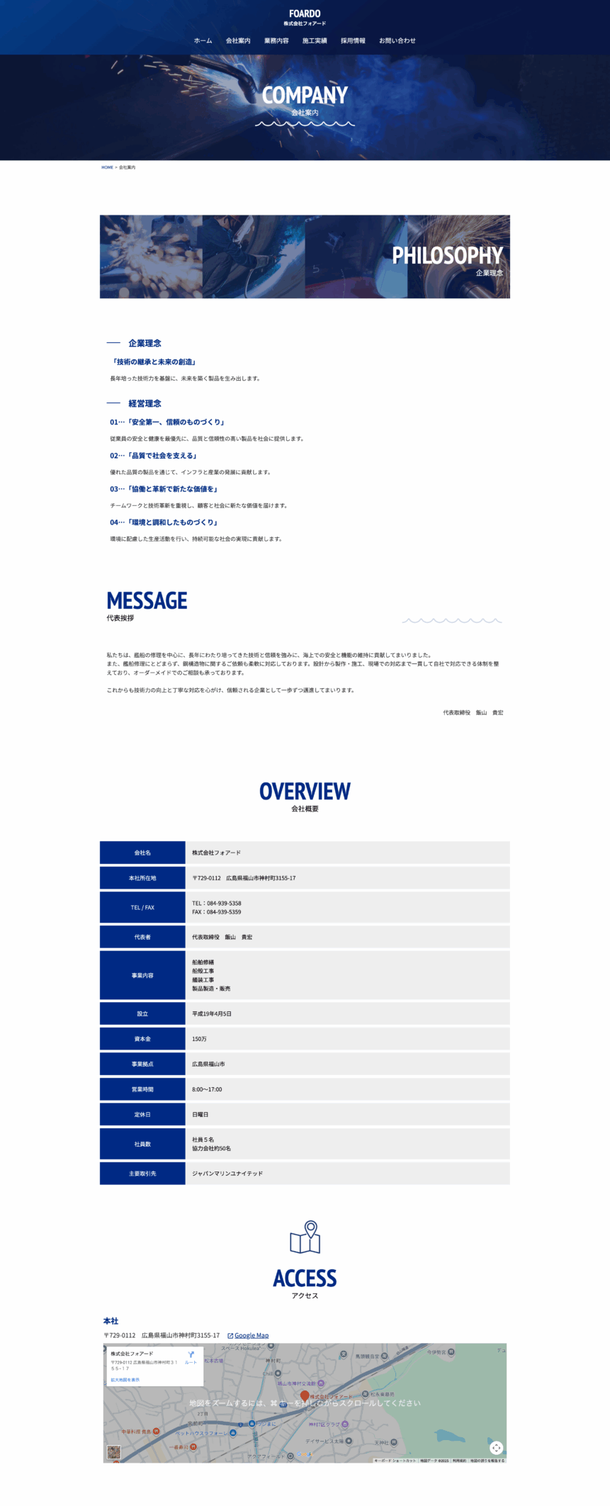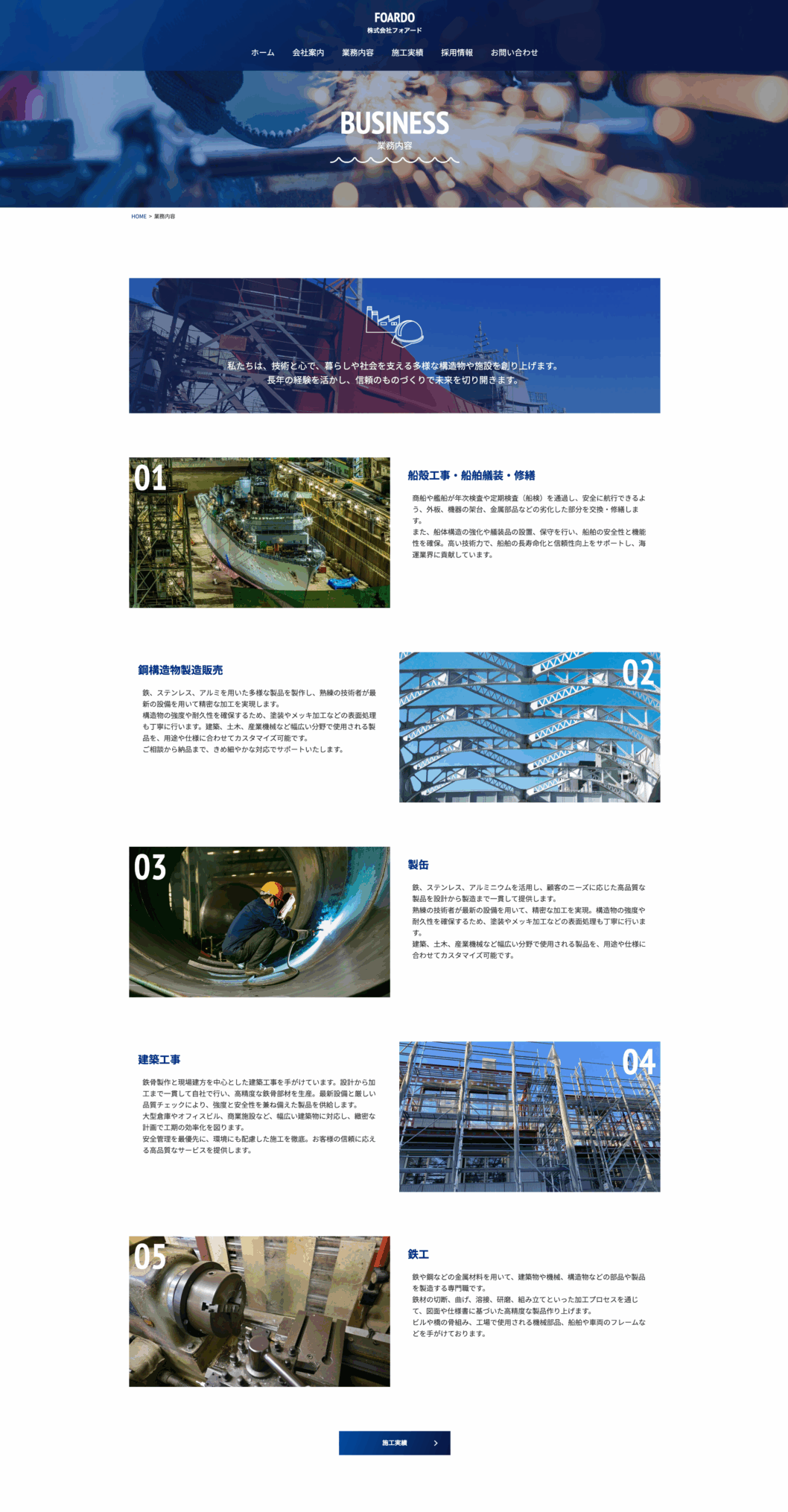船舶修理という重厚で誠実なイメージを大切に制作いたしました。